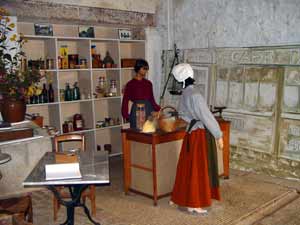 | Cette exposition se déroulait dans une ferme vexinoise particulièrement appropriée à son thème. On y admirait encore l'ancien four à pain, les anciennes étables, l'ancien cellier et le fruitier. Des moutons, cochons, ânesses, des lapins de différentes races, des poules et des coqs de Gournay et autres volailles animaient la cour. Les visiteurs pénétrèrent , un intérieur d'habitation XVIIIème siècles, une laiterie, un café et une épicerie, une cressonnière. Ils s'initièrent à la fabrication du miel, s'attablèrent à une table dressée pour un repas de mariage, admirèrent le matériel de maraîchage, dégustèrent le cidre fabriqué chaque fin de semaine. De nombreuses photographies illustraient le thème de l'eau, tandis que des objets évoquaient la culture de la vigne autrefois implantée dans notre région. |